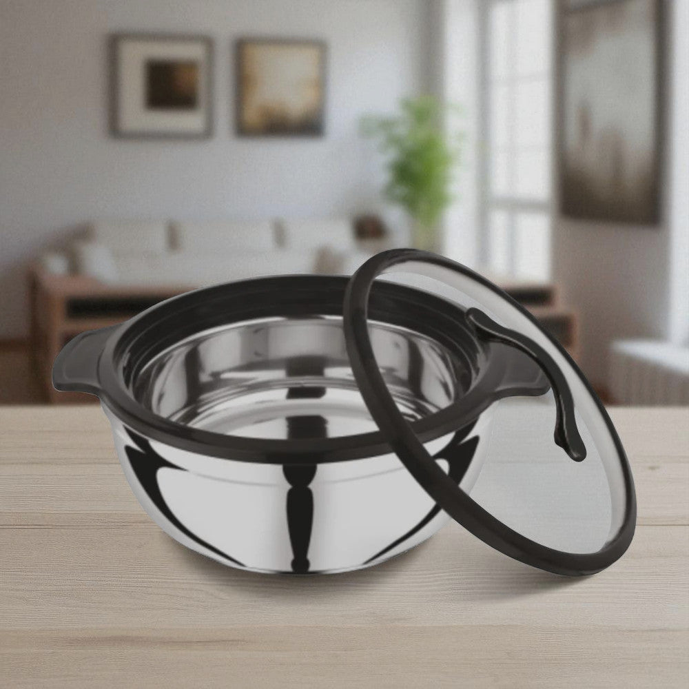 With Lid: Strong tuff glass lid with lock to preserve heat and freshness.
