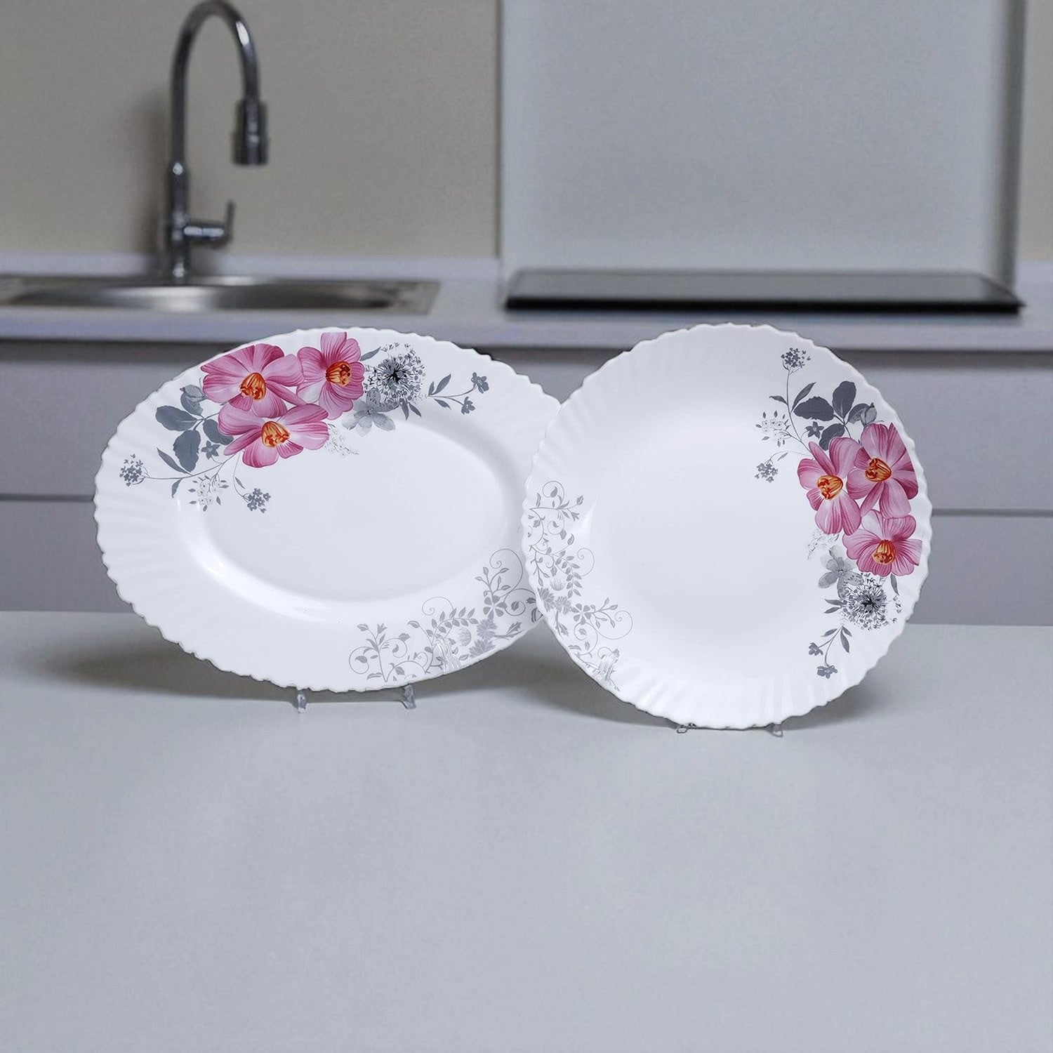 Born Chef Pack of 33 Opalware White Ceramic Dinner Set – 33 Pc Oval Striped Design