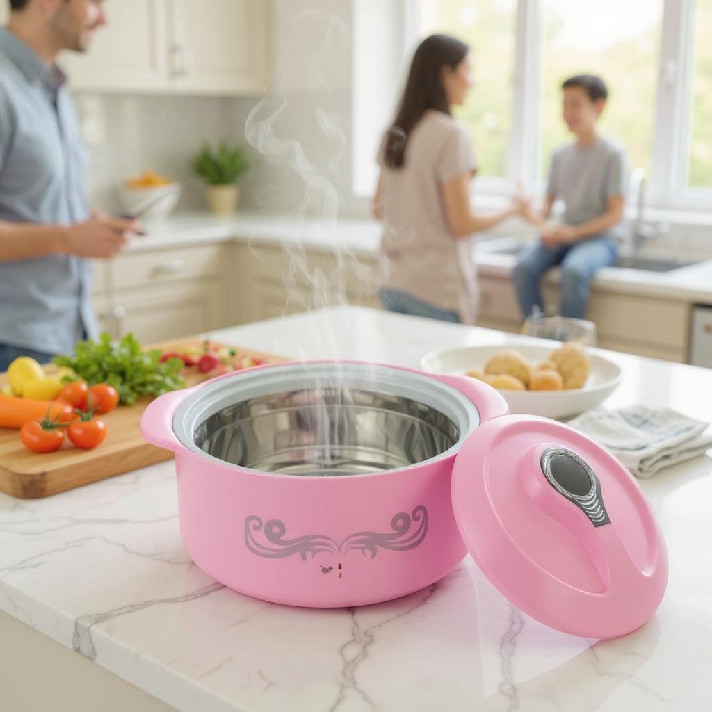 Breakfast casserole storage made easy with this 3000ML insulated casserole in an elegant pink finish. Designed to keep food warm for hours, it’s the perfect solution for serving hot meals like breakfast casserole, rice, chapati, sabzi, and more — whether at home or during gatherings.