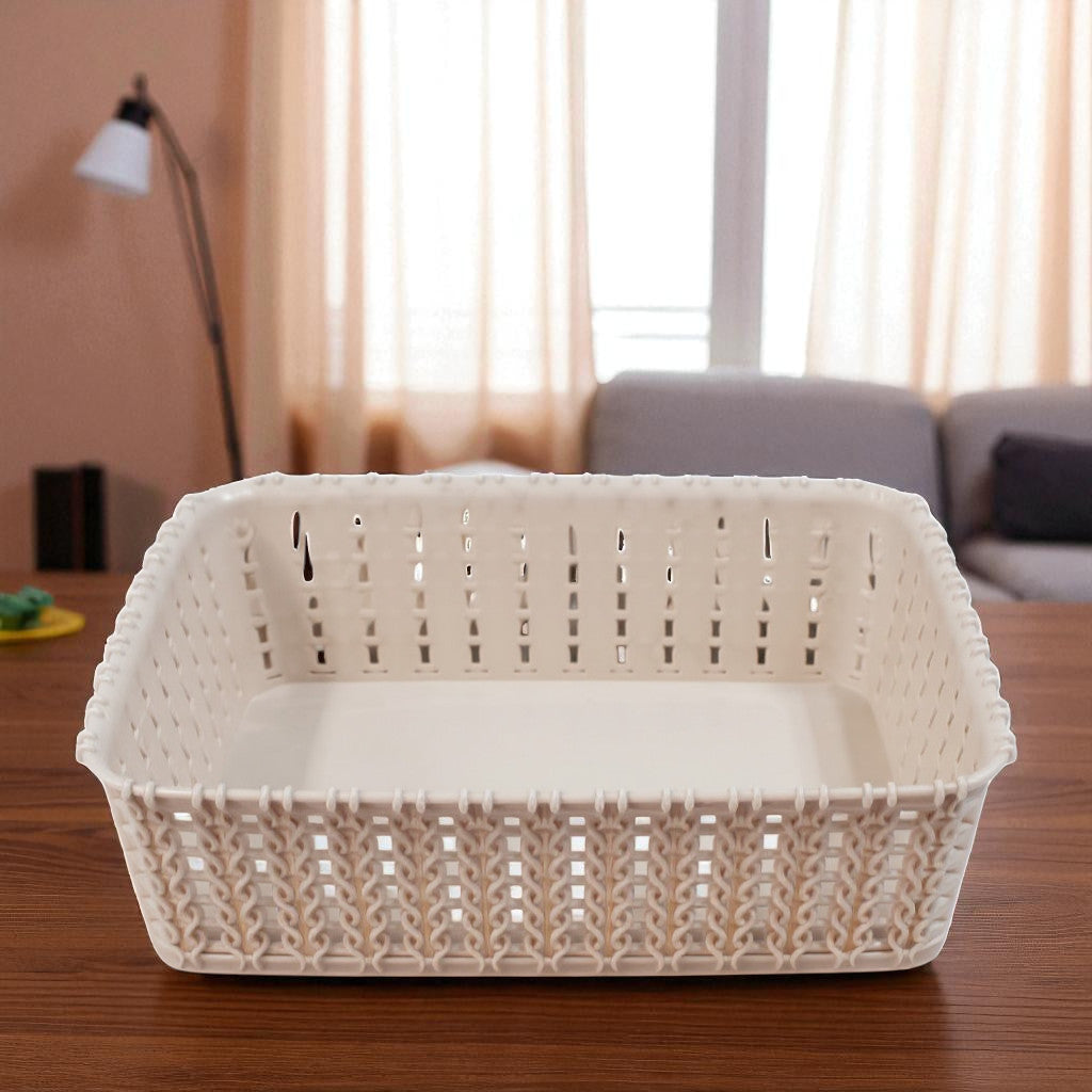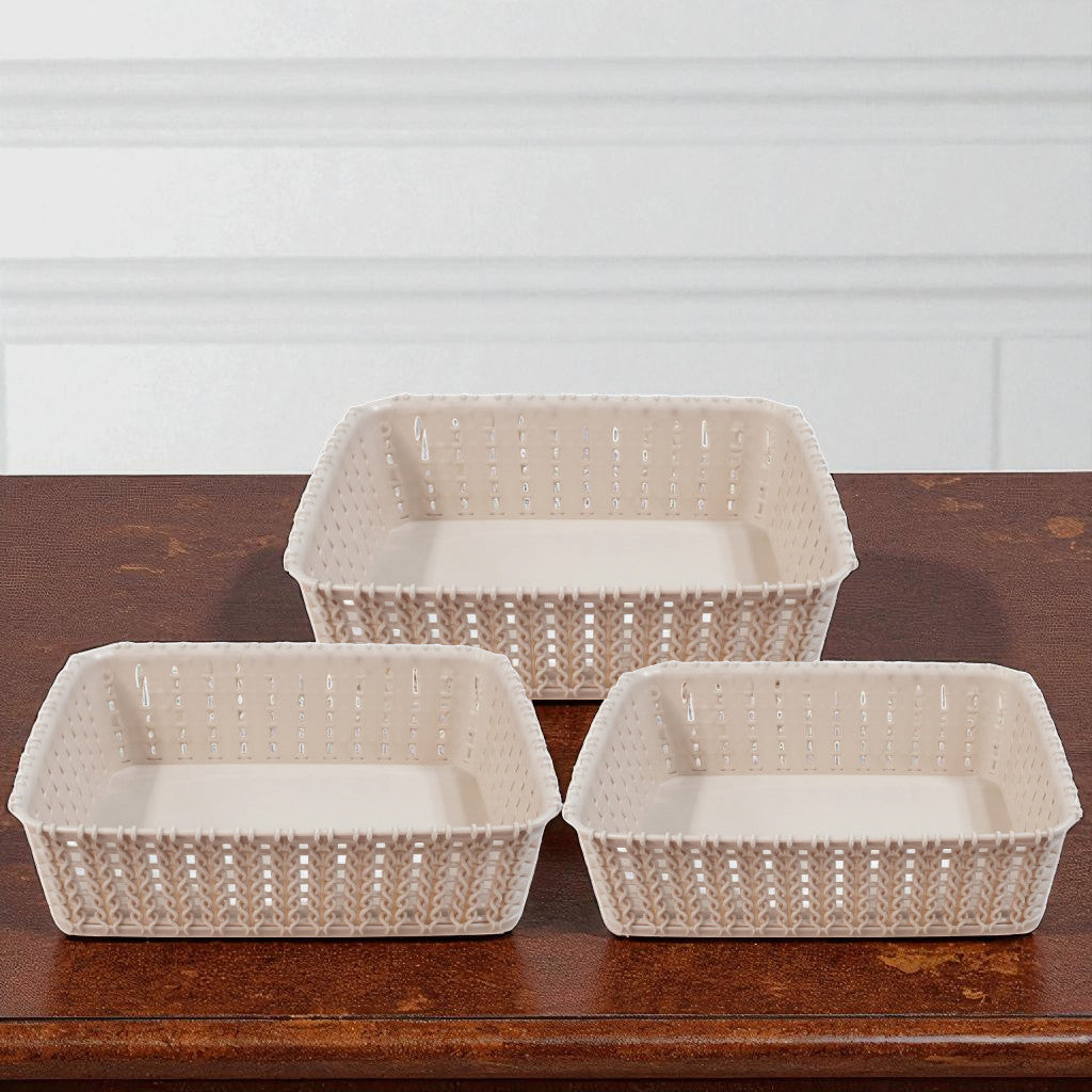 Organize your essentials with the Mini Brown Multipurpose Sturdy Woven Storage Baskets (Pack of 3). Designed with a sleek rectangular shape and textured woven finish, these plastic baskets are durable, stylish, and ideal for versatile storage at home or office.