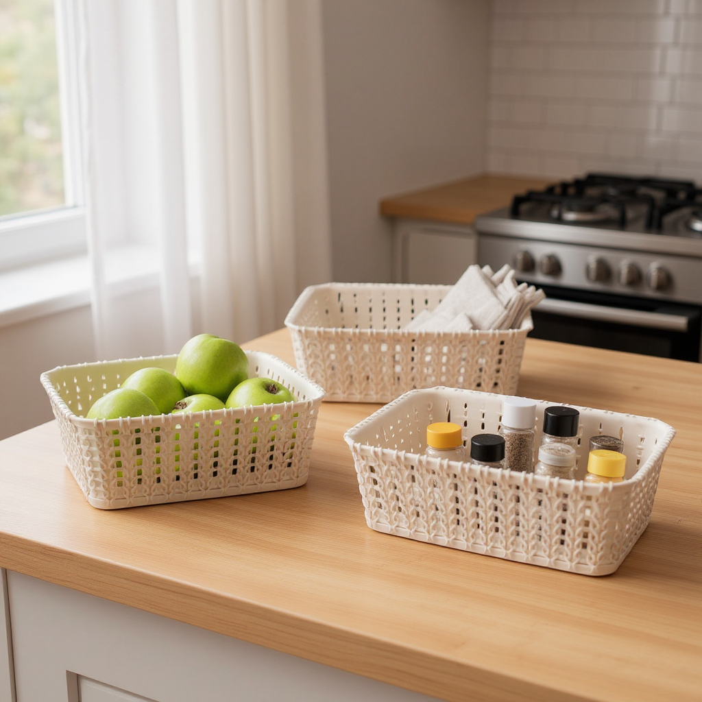 This mini storage basket set offers a stylish yet practical way to keep your home and workspace tidy. Whether you need a storage basket for kitchen, toiletries, or office stationery, these sturdy and compact organizers are the perfect solution.
