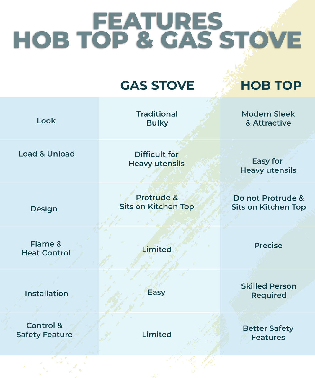 Traditional Gas Stove: Often bulky, protrudes on kitchen top, limited flame control.
