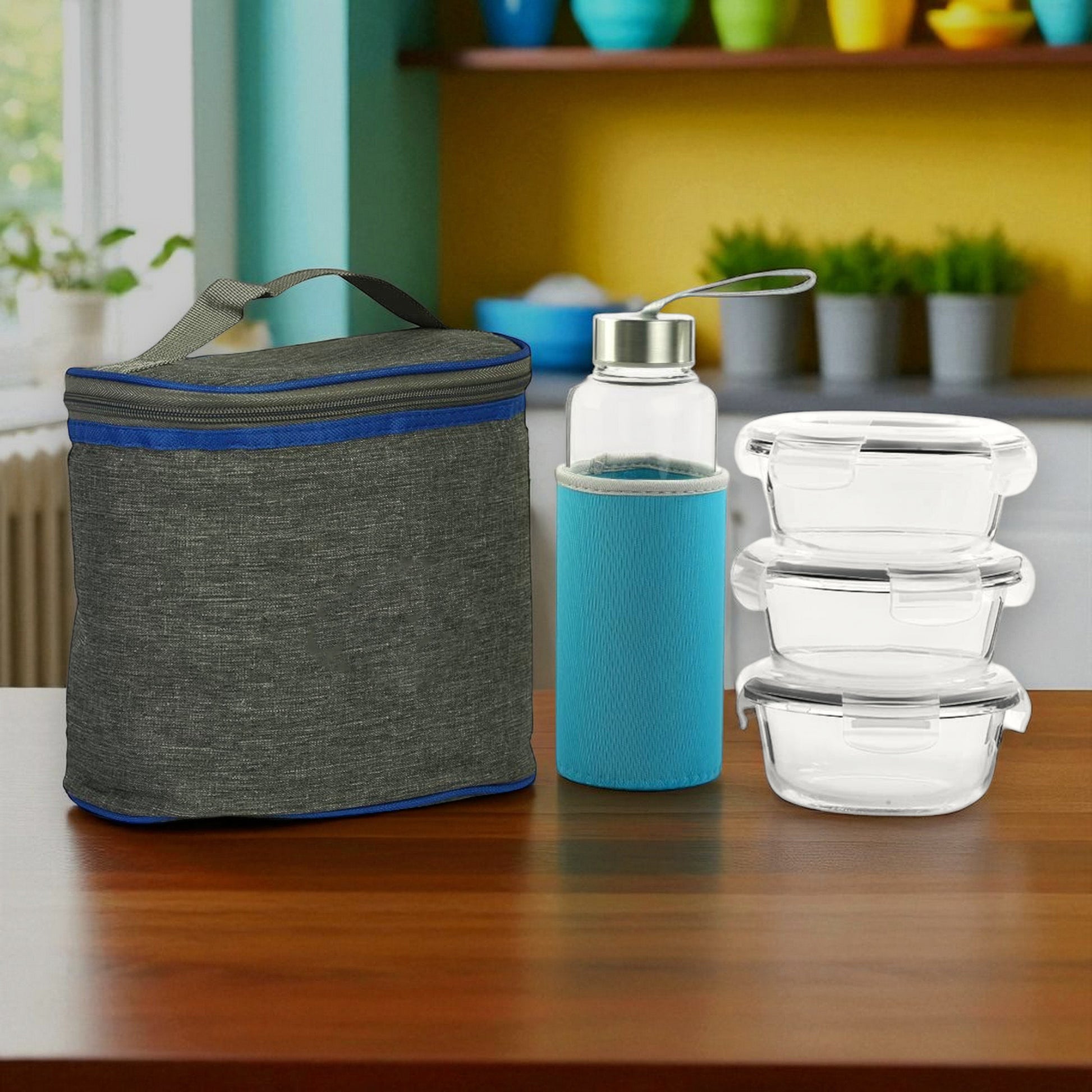 Enhance your meal storage with this premium borosilicate glass lunch box set, designed for professionals and students. The glass lunch box set of 3 includes three round 400ml containers plus one borosilicate glass water bottle, all microwave safe and leak-resistant. Crafted from durable, heat-resistant glass, these containers are ideal for reheating food at the office without affecting flavour or quality. Perfect as a lunch box for office, this set ensures healthy, eco-friendly storage and keeps meals fresh throughout the day. The compact, portable design fits easily in standard bags, while the glass lunch box for office adds elegance to your daily routine. BPA-free and dishwasher safe, this set is built for everyday convenience.