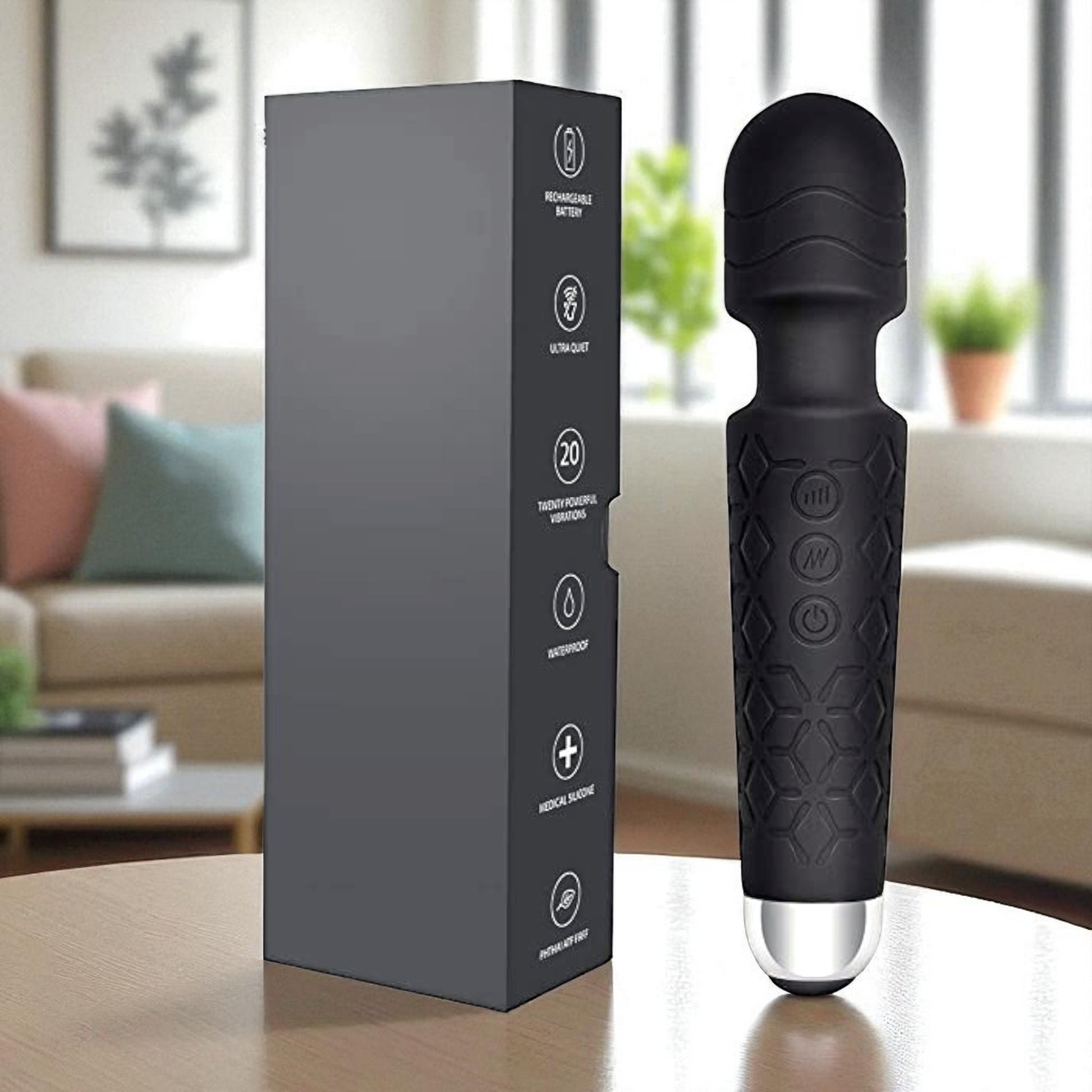 Relax and recharge with the Electric 8 Speed Rechargeable Wand Body Machine Massager. Crafted from premium skin-soft silicone, this electric massager machine offers 20 powerful vibration modes for deep tissue relief across your back, neck, shoulders, and full body. With adjustable 8-speed intensity and a rechargeable design, it's perfect for home or travel use. This machine massager combines comfort and performance, delivering effective relief from muscle fatigue, tension, and stress. Ideal for daily use, it's also a trusted electric massager for back pain, thanks to its ergonomic wand shape and flexible massage head. Whether you're unwinding after work or targeting chronic soreness, this compact and cordless device is a must-have in your wellness routine.