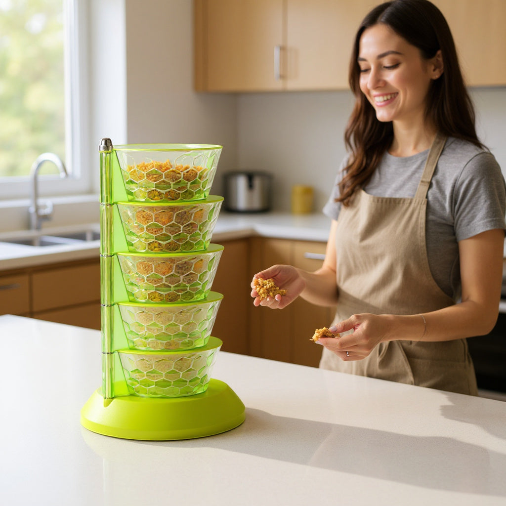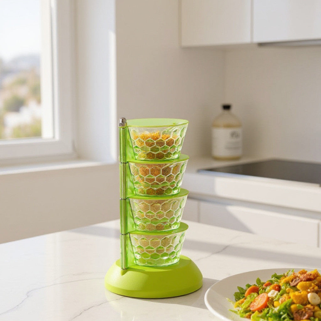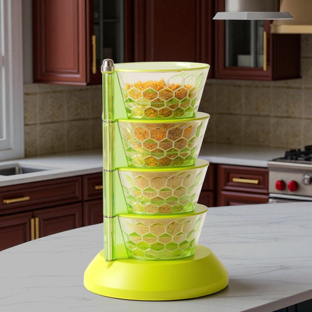 Food Storage Containers – 4 Compartment Tower Spice Rack | 4 Layer Storage Containers
