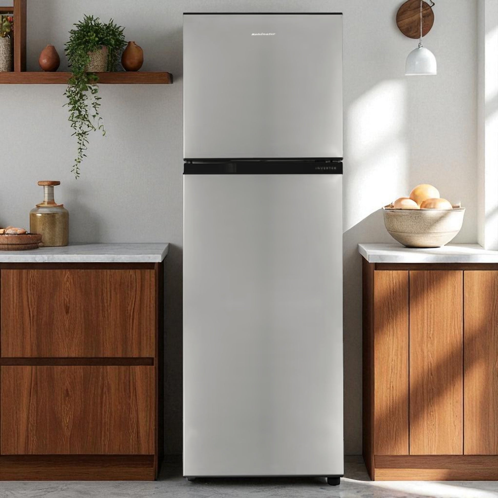 Kelvinator fridge double door with 270 litre capacity offers the perfect balance of style, cooling performance, and energy efficiency. This Kelvinator refrigerator features a sleek bright silver finish and is designed with a top freezer, ideal for compact to mid-sized Indian homes.