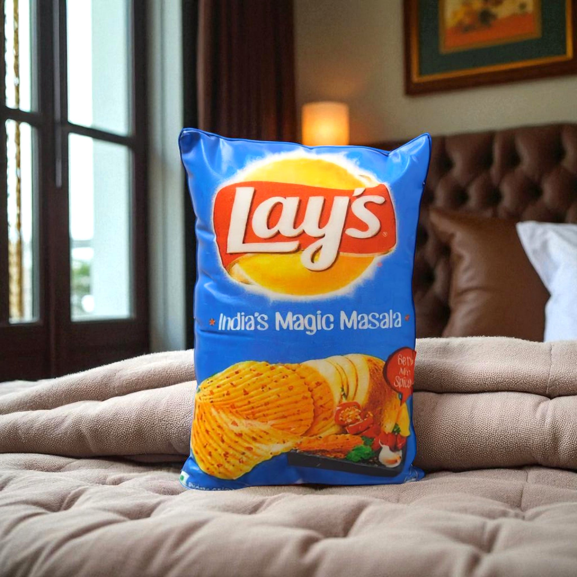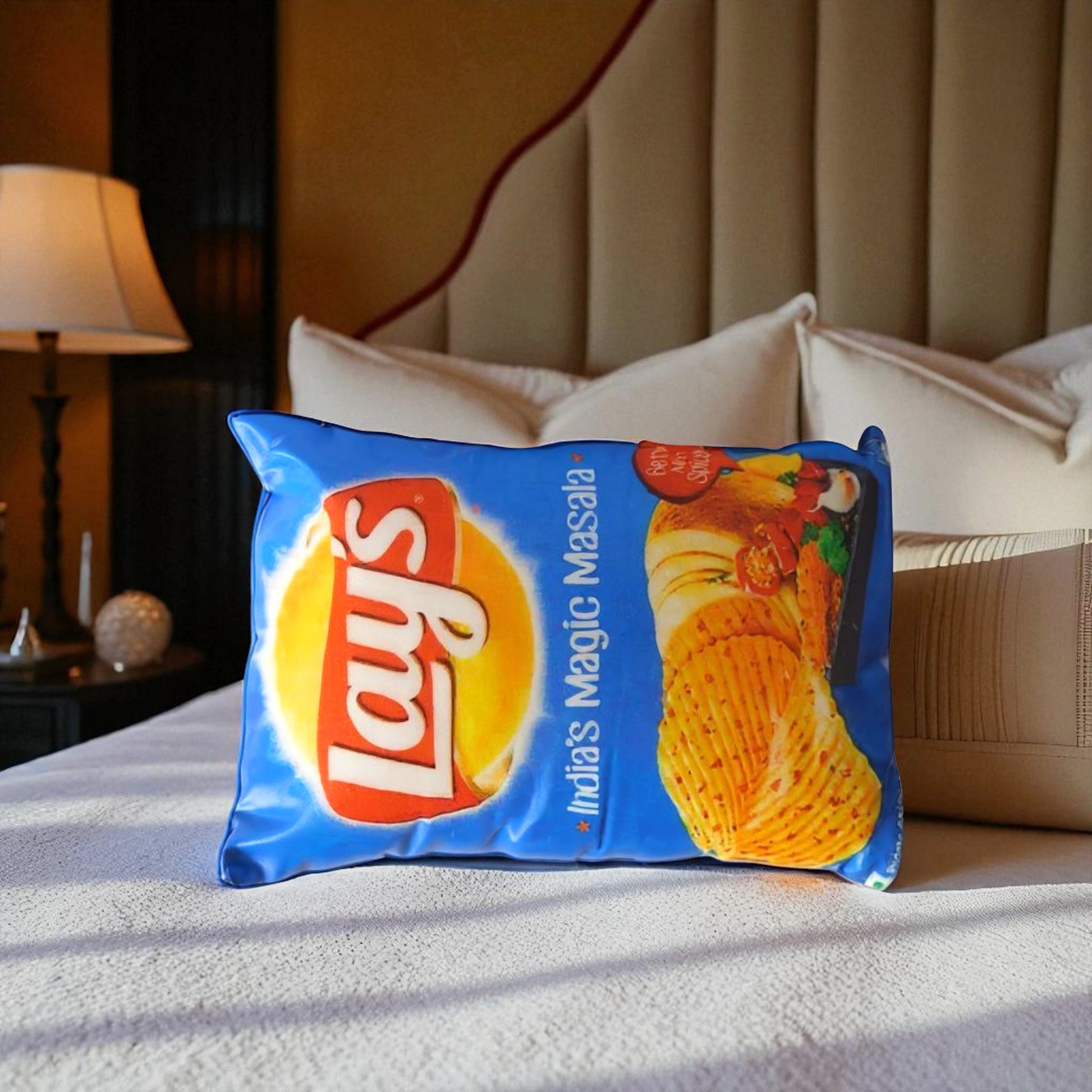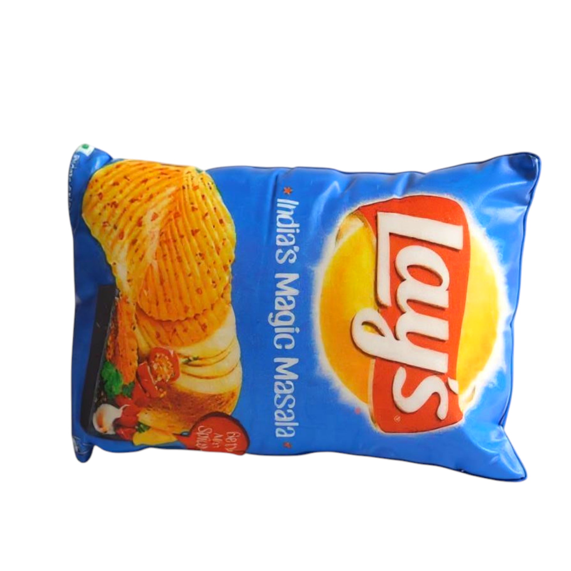 Lays Chips Pillow – Blue Printed Toy Pillow for Kids | Soft Washable Cushion