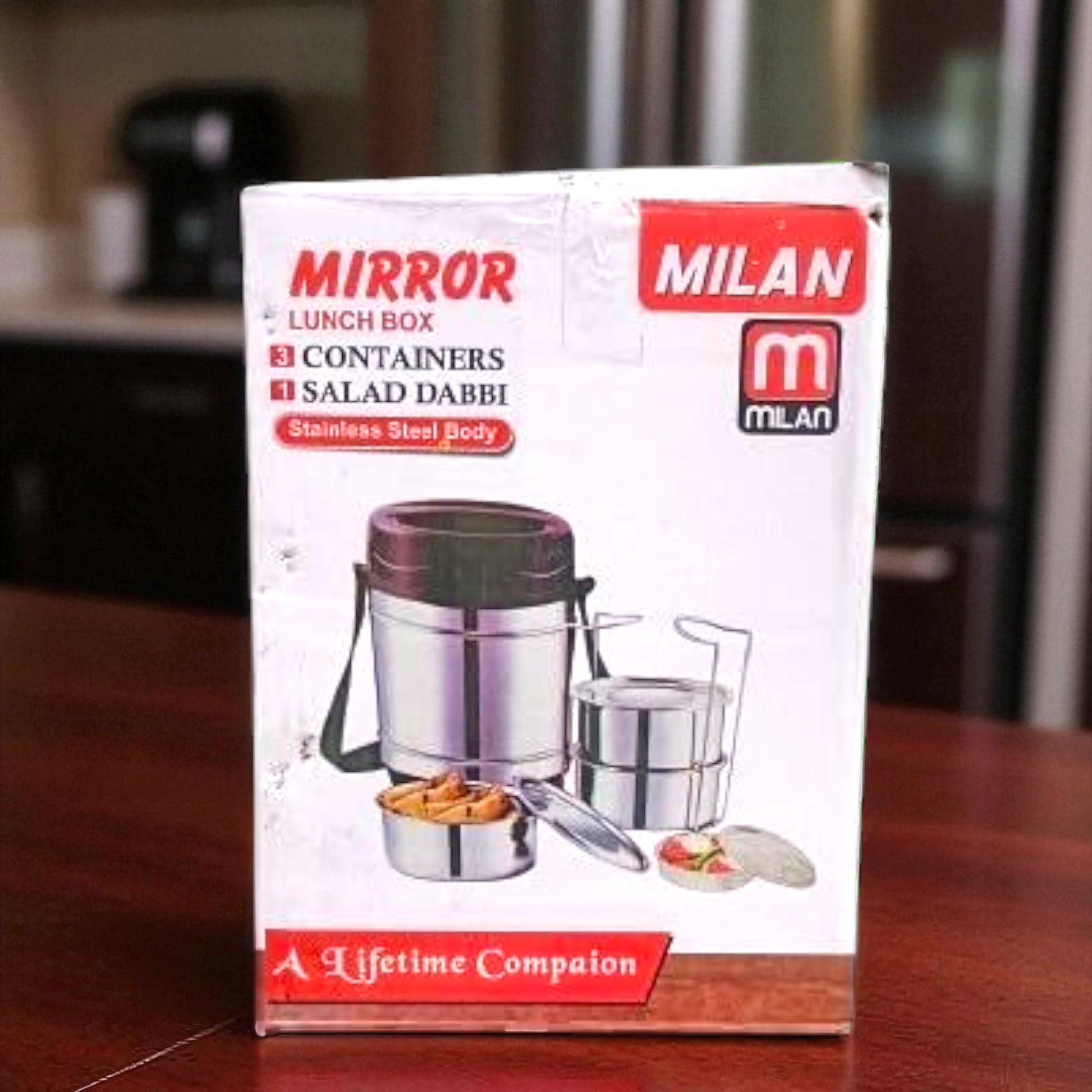 Product: Milan Mirror Lunch Box 3 Containers + 1 Salad Dabbi