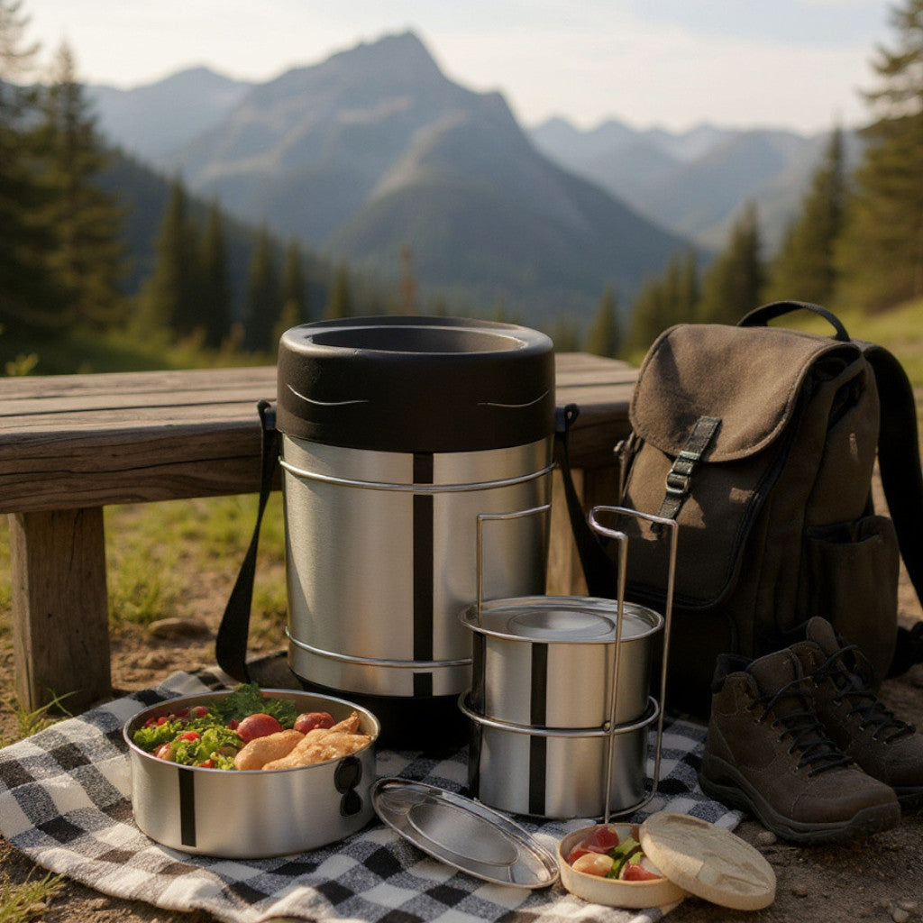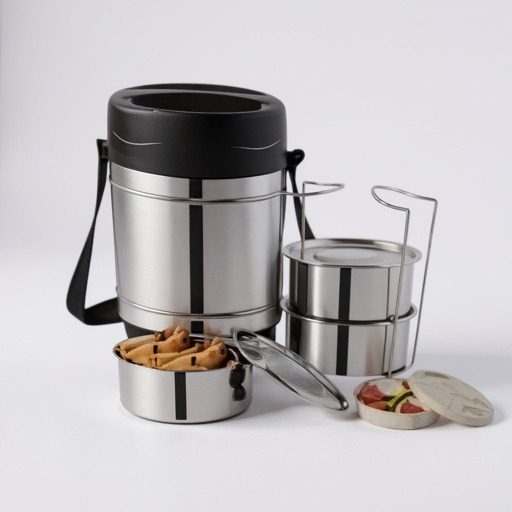 With 3 containers plus an extra salad dabbi, this three compartment lunch box allows you to carry multiple dishes separately without mixing flavors. The non-stick finish ensures easy cleaning, while the strong stainless steel body makes it long-lasting and reliable for daily use.