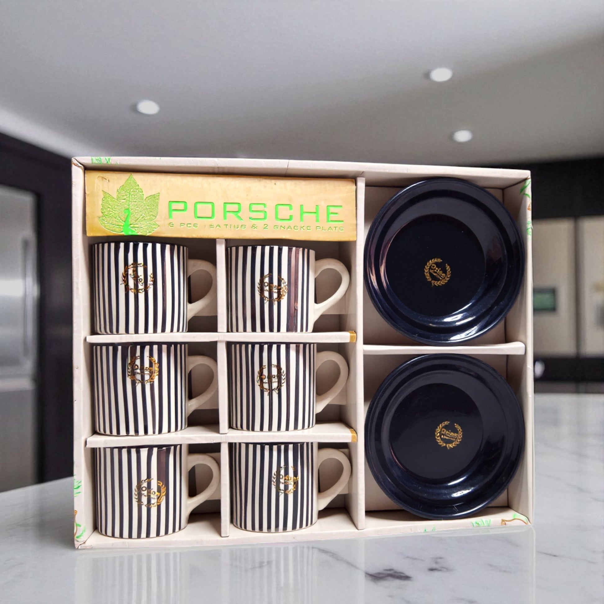 Orion PORSCHE 6 Pcs Tea Mug & 2 Snacks Plate Set | Premium Ceramic Crockery Gift