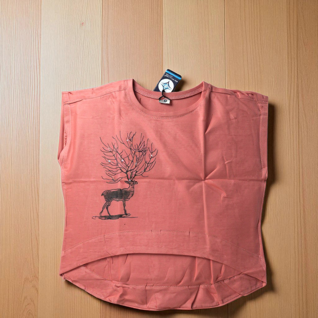 Pink Deer Design Girl Top T Shirt Cotton – Small Size Casual Wear
