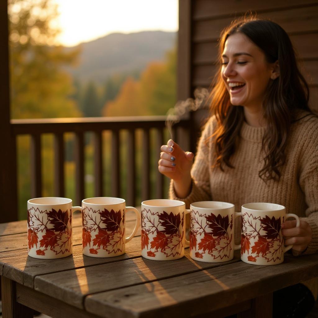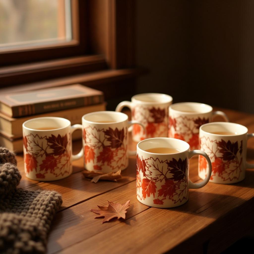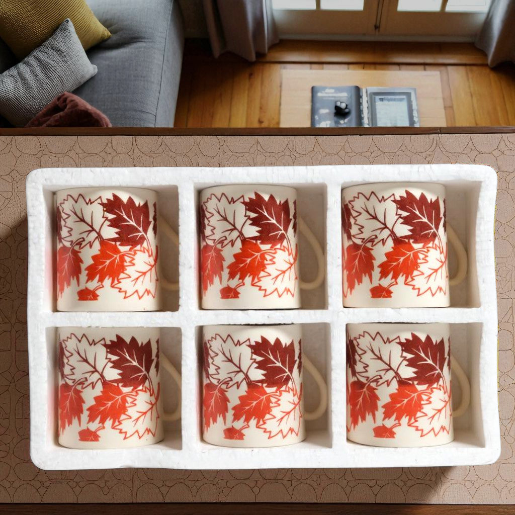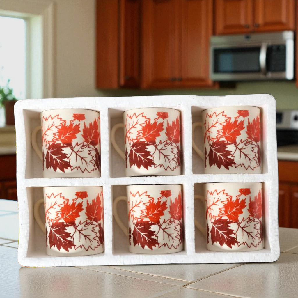Red Leaf Design Ceramic Mug – Stylish Tea & Coffee Cup for Home, Set of 6