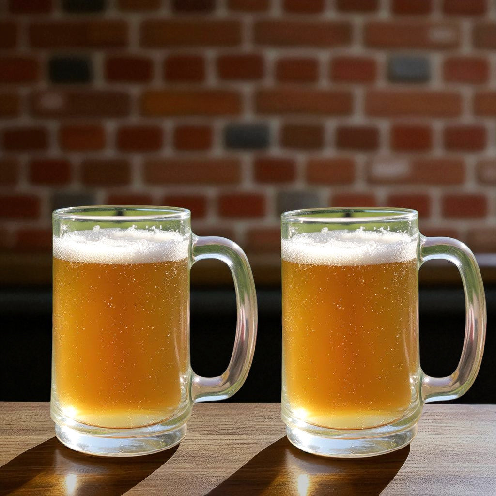 With a generous 380 ml capacity, these mugs are perfect for serving chilled beer, mocktails, or any cold beverage. The classic round shape with a sturdy handle ensures a comfortable grip, while the transparent glass beautifully showcases the drink’s rich color and carbonation.