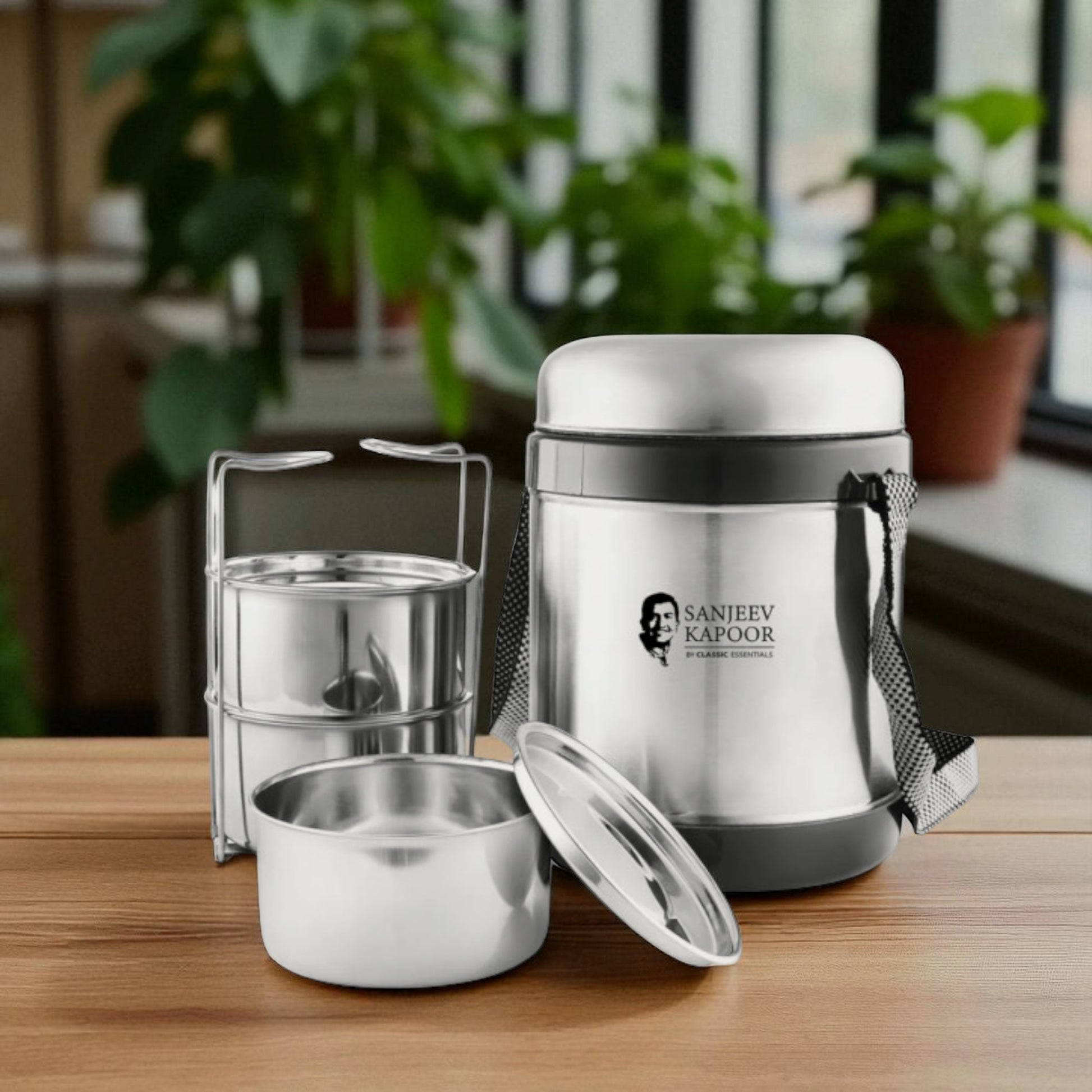 Sanjeev Kapoor Thermo Steel Lunch Box – SS Lunch Box Set of 3 for Office & Travel