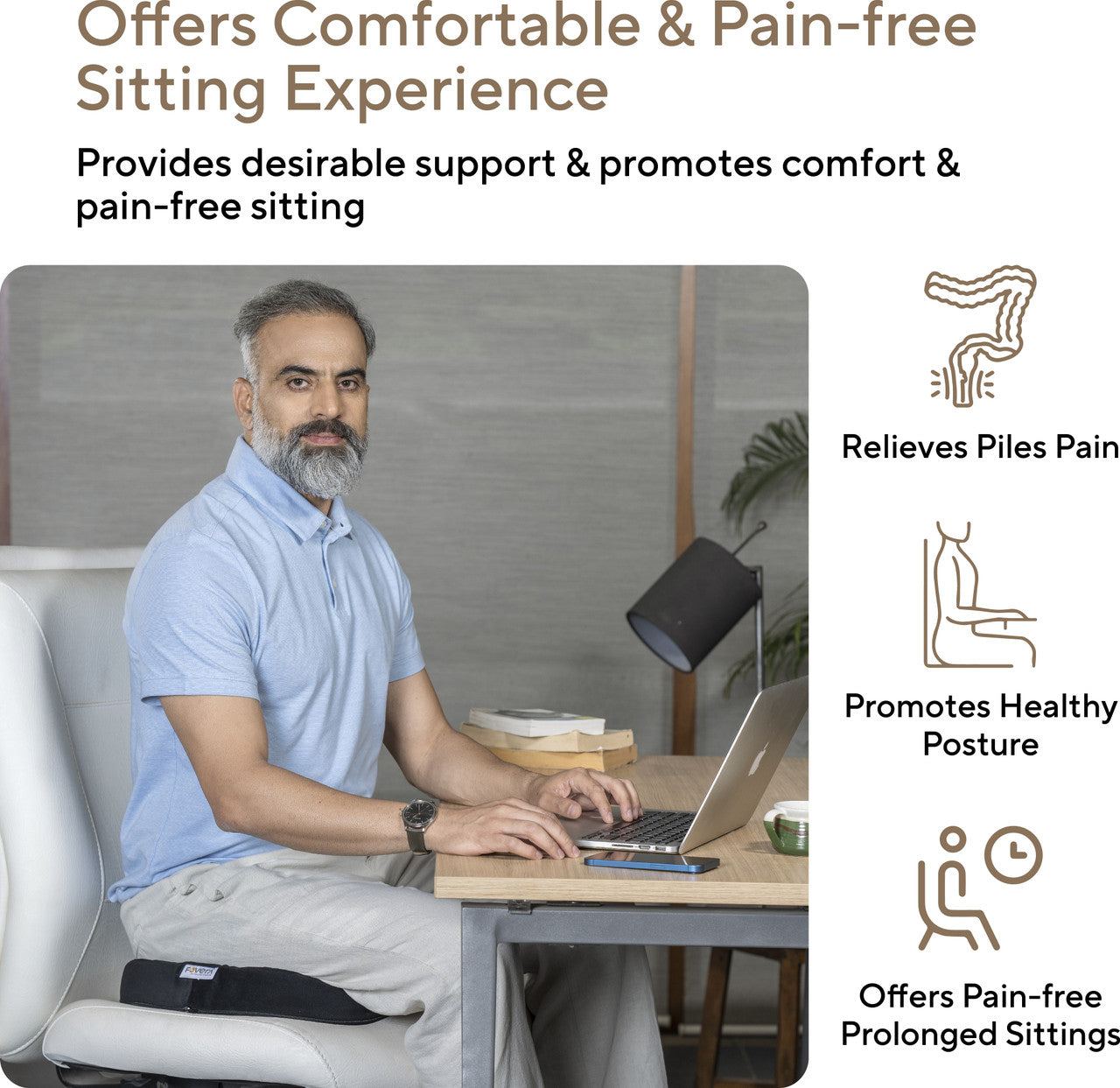 Supportive Use: Helps with hemorrhoids, piles, coccydynia, tailbone pain, and long sitting hours.