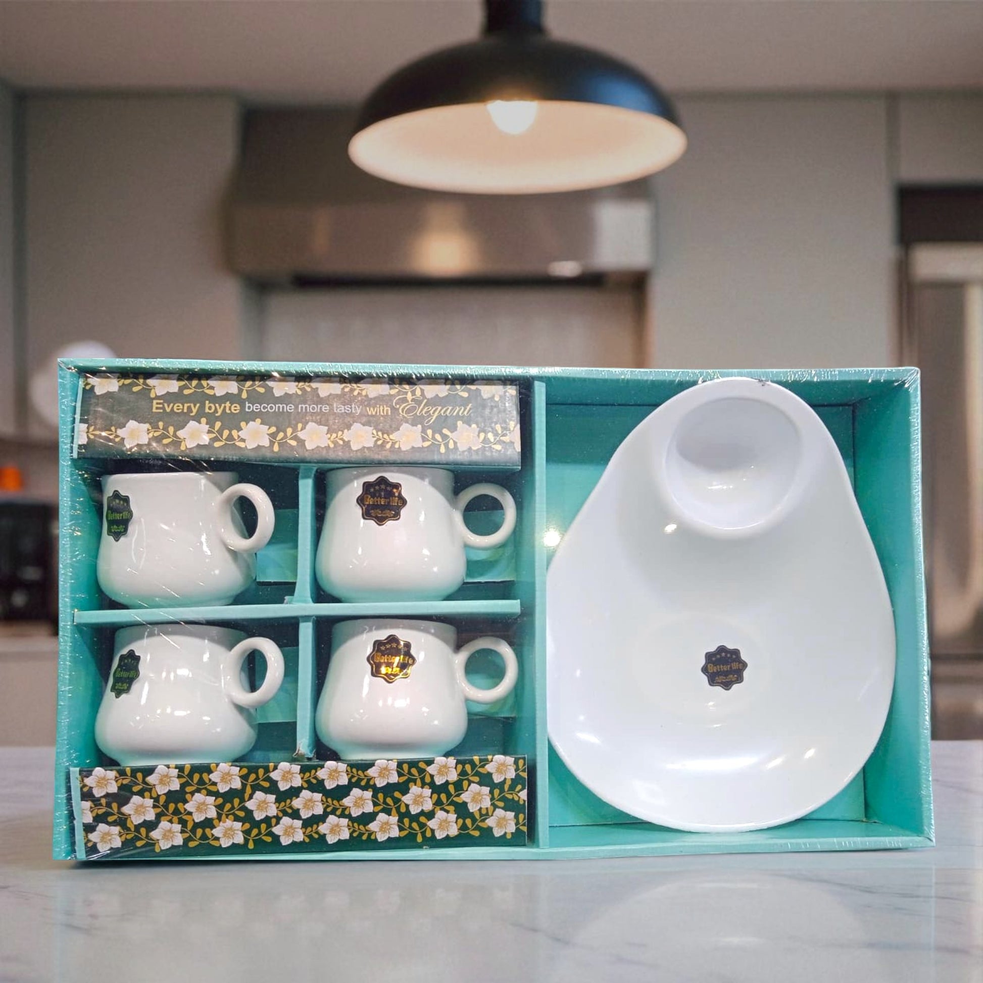 Add elegance and warmth to your tea or coffee time with the Better Life Star Light 4 PCS Coffee Mugs & 1 Snack Platter Set — a perfect choice for festive gifting and everyday use. Crafted from premium ceramic, this stylish set enhances your serving experience and makes an ideal Diwali gift crockery for family and friends.