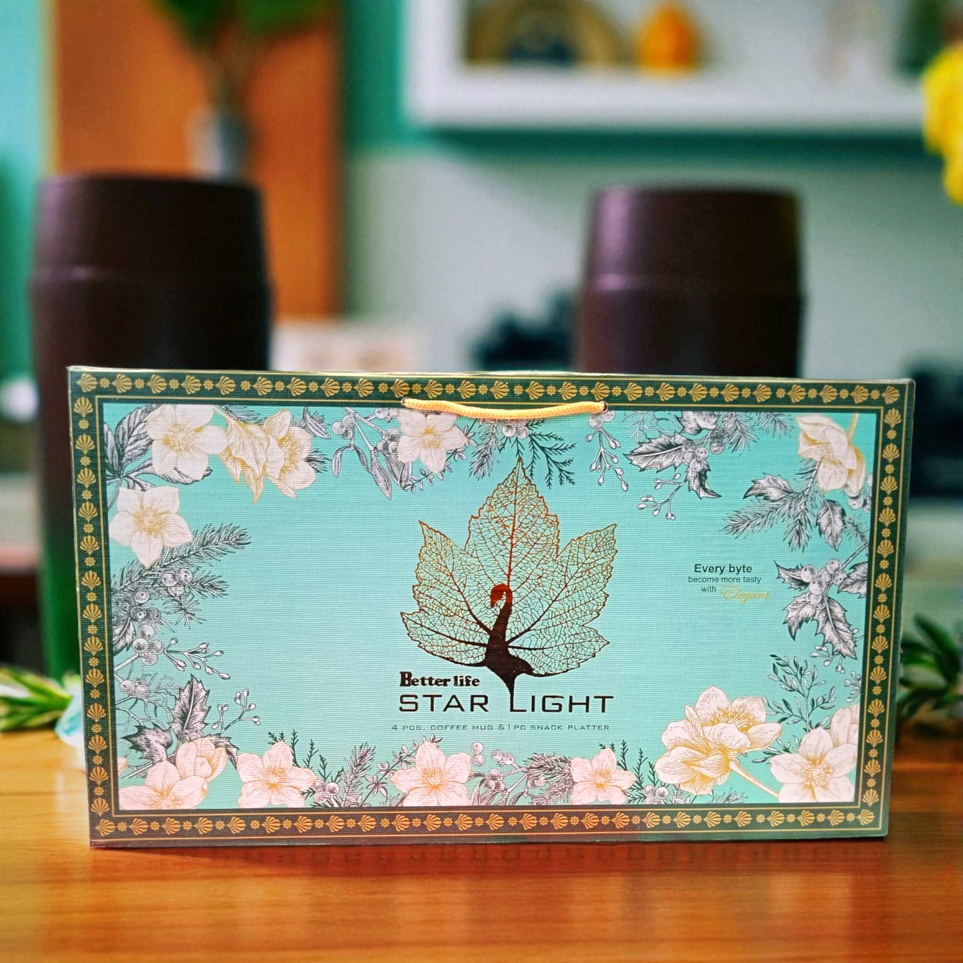 Star Light 4 PCS Coffee Mugs & 1 Snack Platter | Diwali Gift Crockery Set
