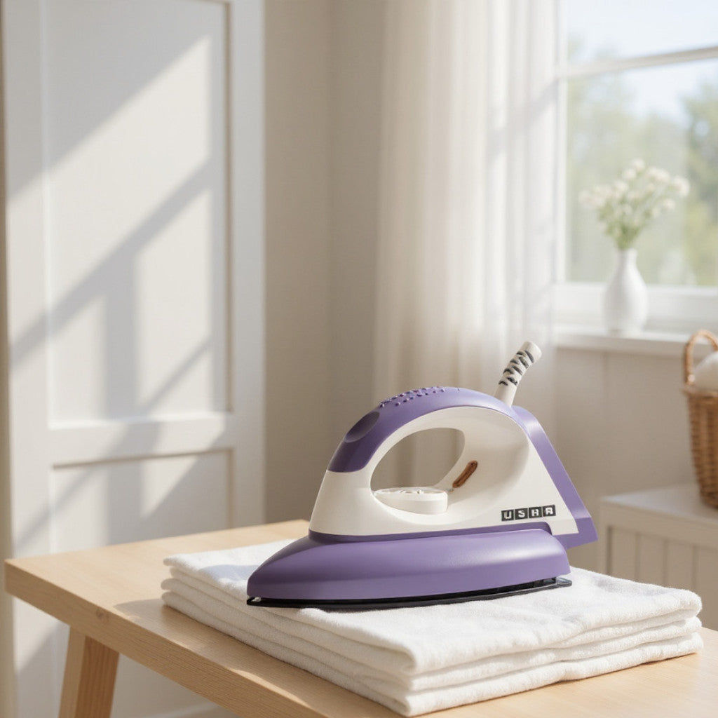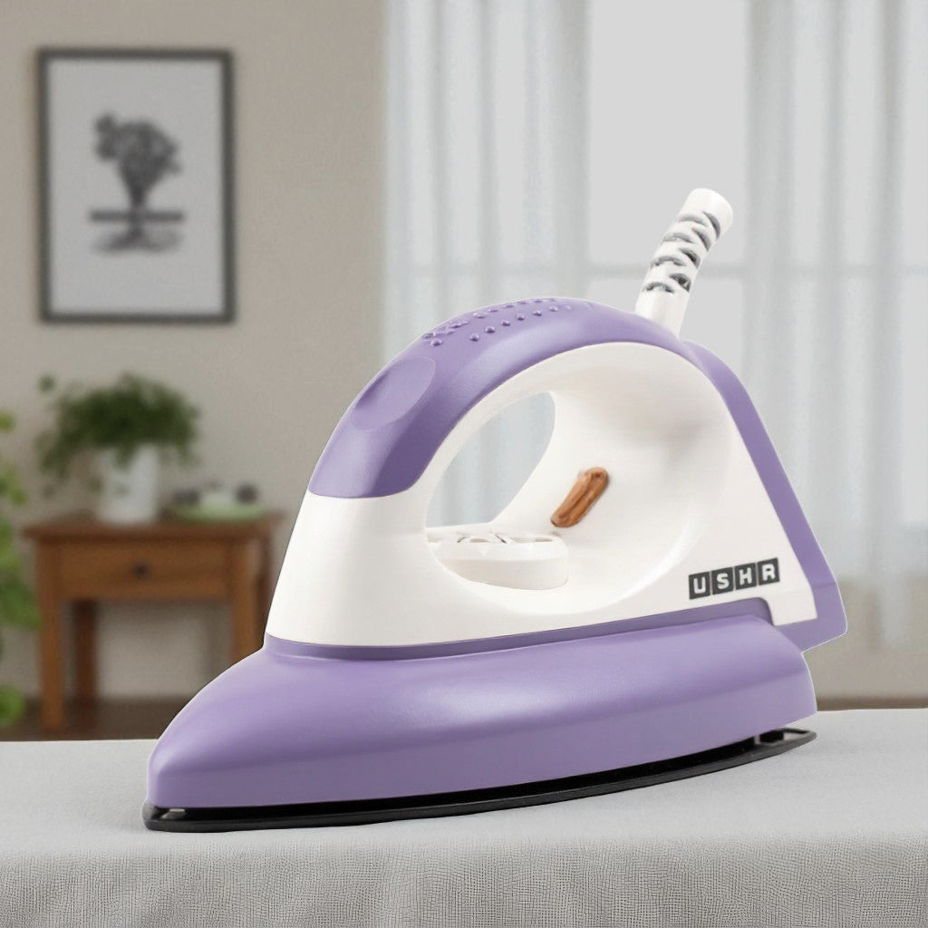 Experience effortless ironing with the USHA AR 1100W Dry Iron (Purple). Designed with a non-stick soleplate and safety features, this dry iron is lightweight, durable, and perfect for everyday use.