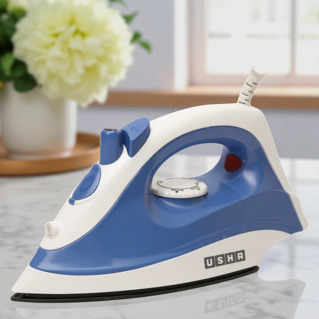 USHA SI 3713 1300 W Steam Iron – Blue | Non-Stick Soleplate, Spray & Self-Cleaning
