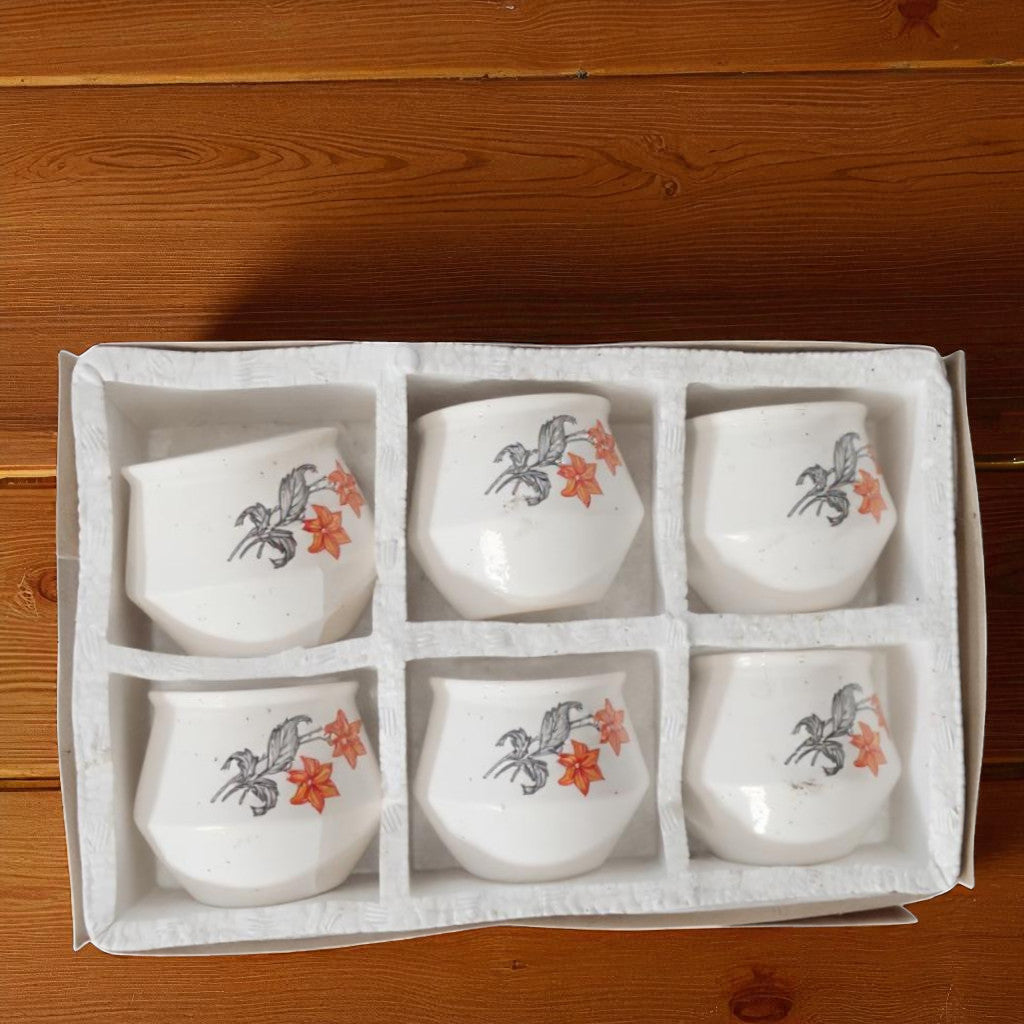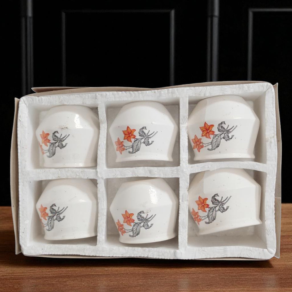 White Cups with Orange Flower Print | Floral Tea Cup Set - 6 Piece