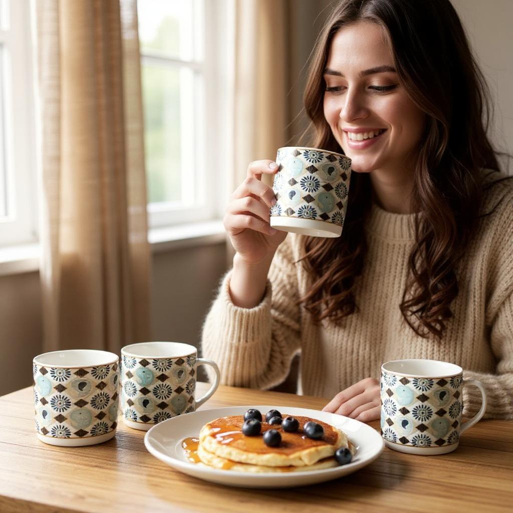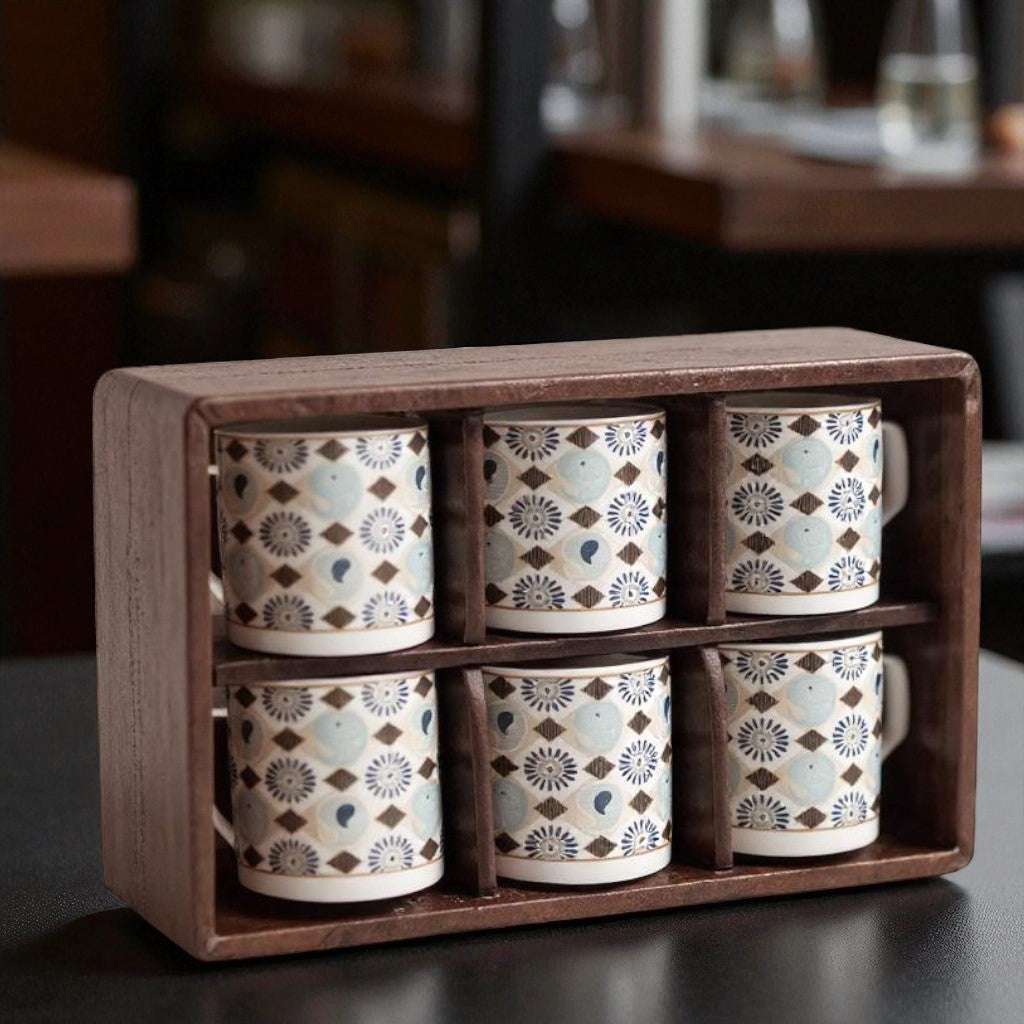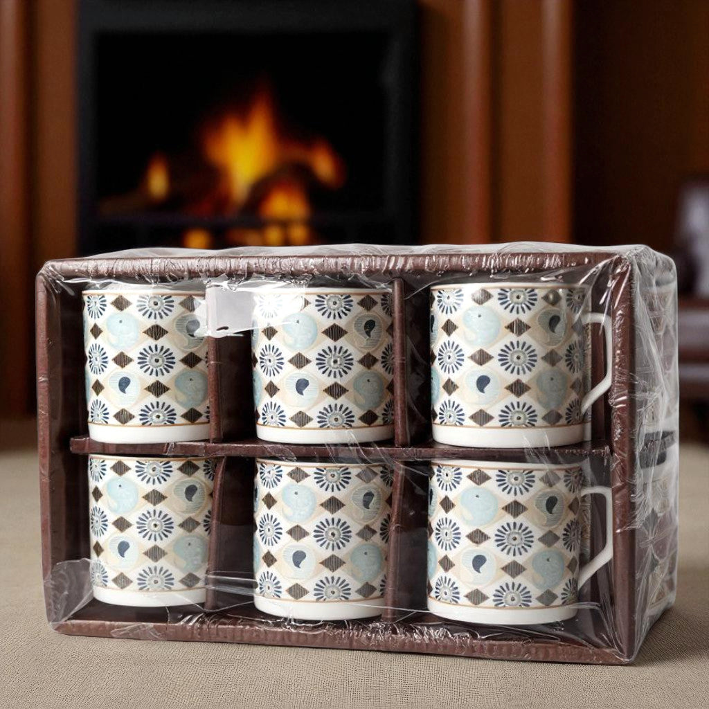 White Tea and Coffee Mugs – Set of 6 Geometric Multicolor Cups for Home, Office & Party